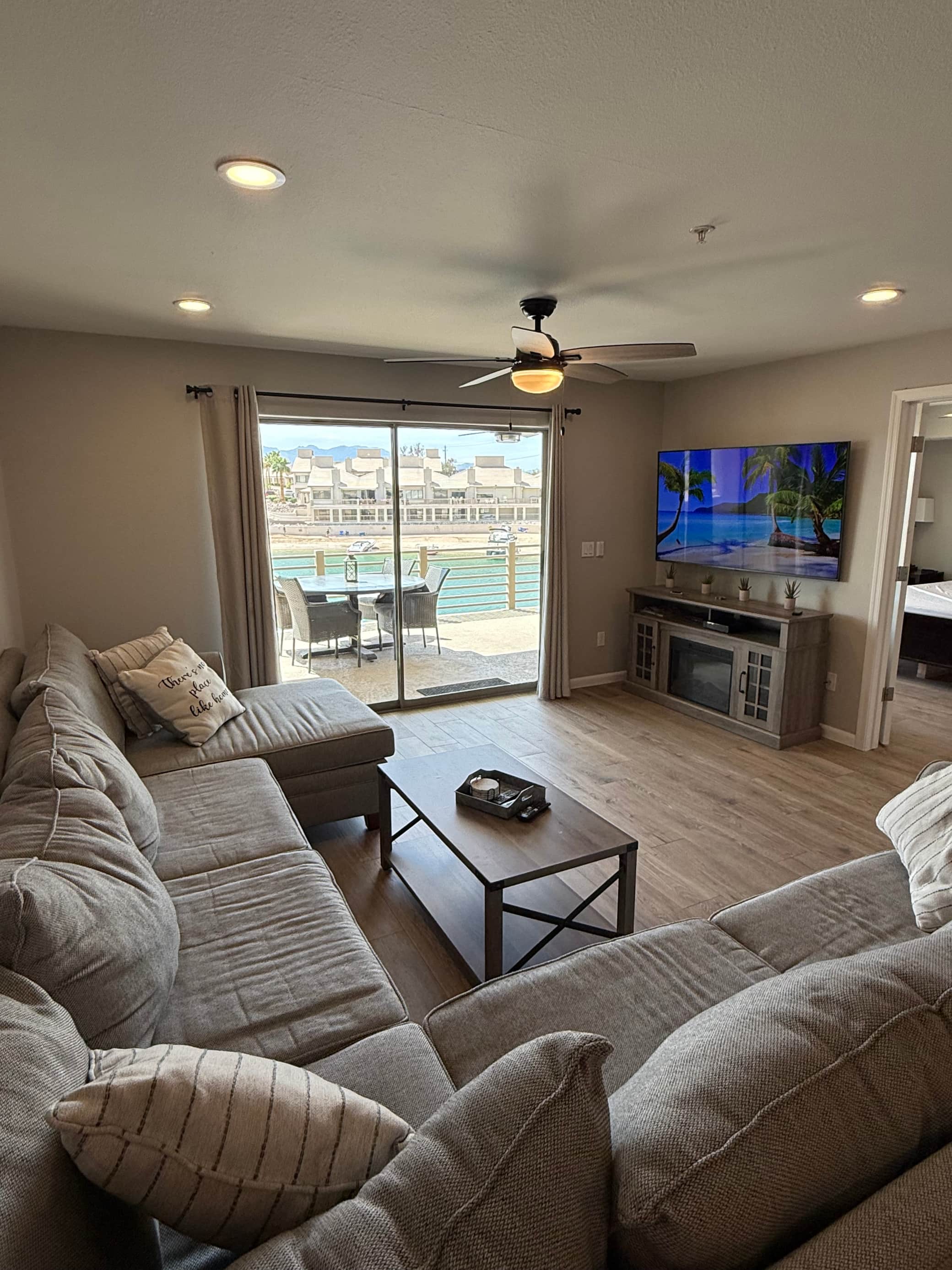 This condo is right on the channel — one of the most desirable locations in all of Lake Havasu. Watch boats cruise by from your private patio or walk across the famous London Bridge to enjoy restaurants, bars, and waterfront attractions. Everything you need is just steps away, making this the ultimate lakefront getaway.